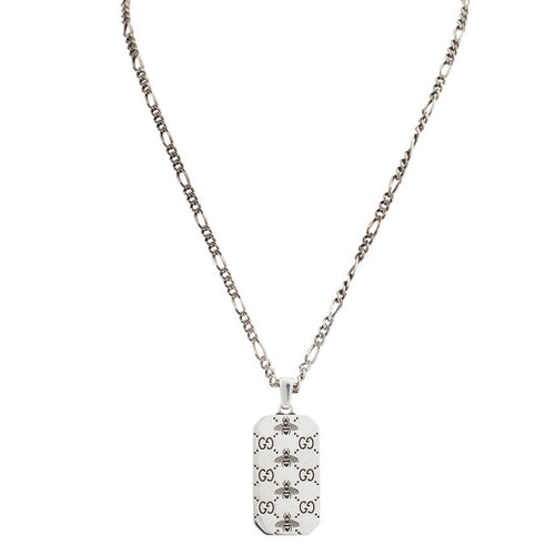 GUCCI "GG and Bee" Engraved Dog Tag Necklace